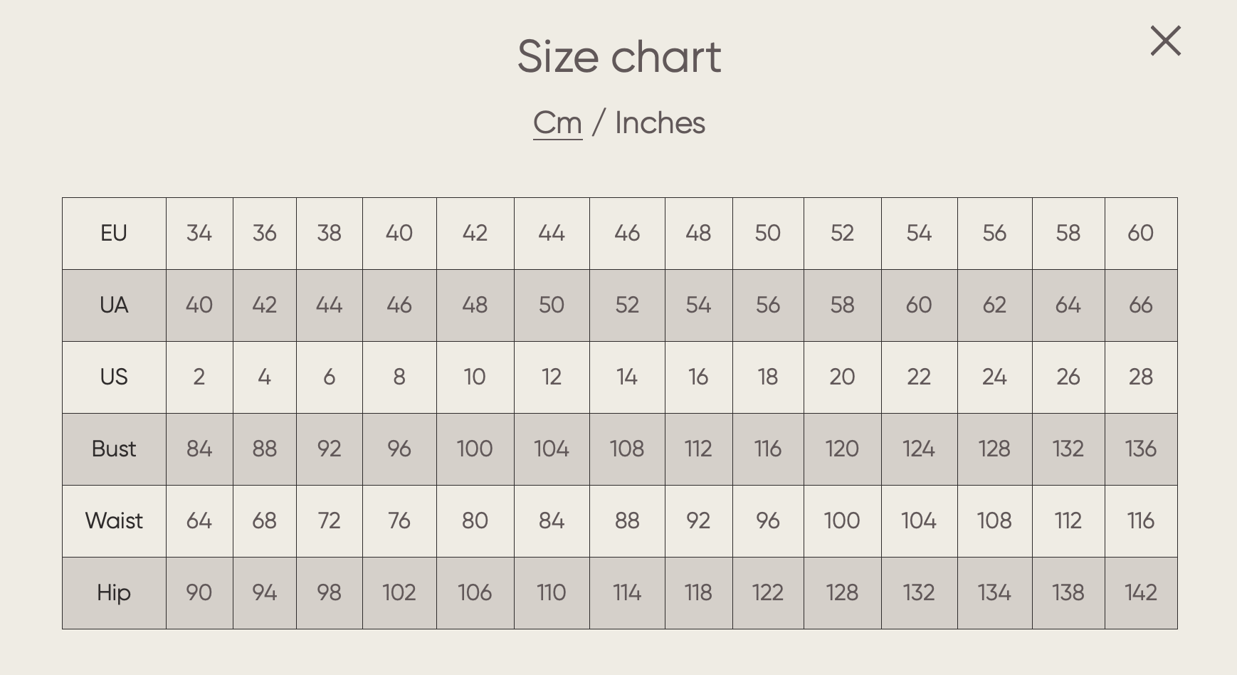Konfektionsgrößen: 34 + 36 + 38 + 42